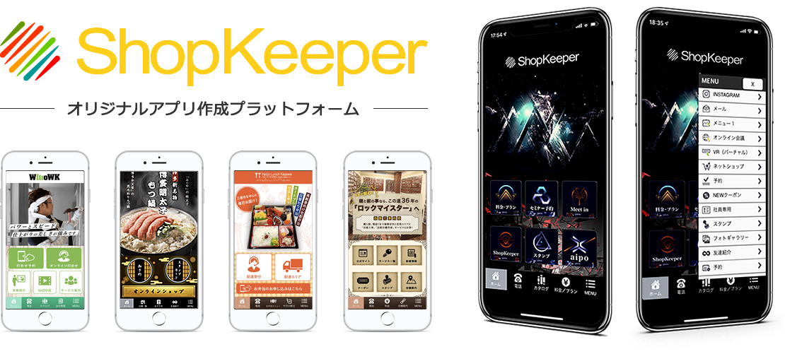 ShopKeeper(ショップキーパー)は、プログラミング知識が無くても誰もが簡単に「iOS/Androidに対応した」アプリを作成出来るプラットフォームツールです。感覚的な操作で更新作業ができる管理画面。ビジネスに必要な様々な機能を搭載。デザイン変更、ストア申請管理までの全てを実現。実機確認ができる専用アプリも提供。モバイルシフトでビジネスを加速化させます。