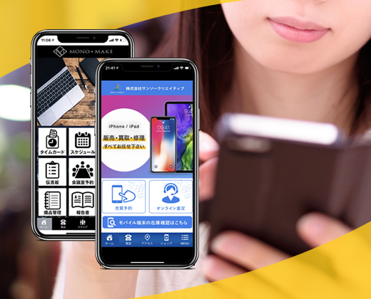 社内のスケジュールや勤怠管理、会議室予約に報告書など日々の社内業務や情報共有をアプリで手軽に操作。オリジナルアプリでテレワークにも最適。